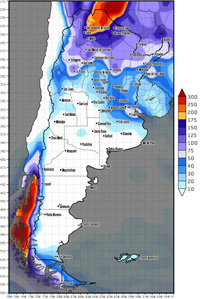 La posición del anticiclón favorece una circulación del viento del sector este en toda la franja este del país y una circulación del sector norte sobre el NOA, con lo cual, esa franja del país, tendrá un importante aporte de humedad en las capas bajas de la atmósfera, con lo que se prevén condiciones inestables en toda la región. Esta situación será favorable para el desarrollo de precipitaciones en forma de chaparrones y tormentas aisladas en horas vespertinas.