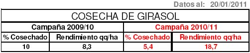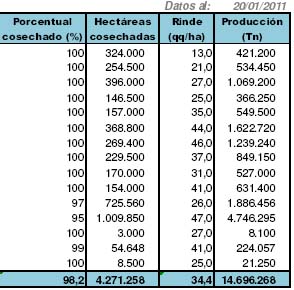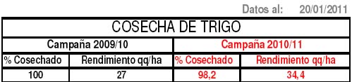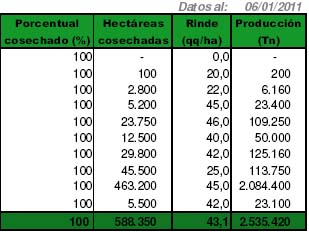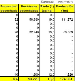 Tres Arroyos. Al 20 de Enero el rendimiento medio a nivel nacional es de 3.440kg/ha (160kg/ha superior al anterior publicado).