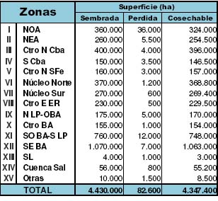 Contrariamente, un elevado porcentaje de la superficie sembrada en fechas tempranas a lo largo del área agrícola, presenta en mayor o menor medida reducciones irreversibles