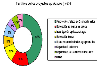 Nuevamente la mayor cantidad de proyectos aprobados están relacionados a la producción y elaboración de alimentos.
