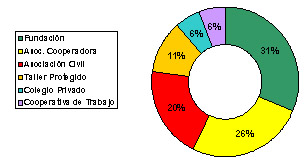 La forma jurídica mayoritaria entre las ONG es la de Fundaciones, seguida por Cooperadoras Escolares y Asociaciones Civiles.