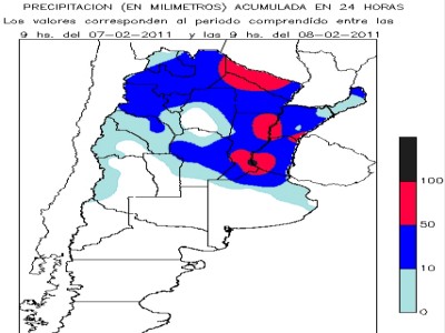 Lluvias registradas entre el 7 y el 8/02 de acuerdo al SMN