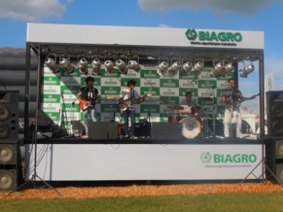 El escenario que Biagro montó en Expoagro, en Baradero, para recibir a una banda de rock originaria de La Plata, lugar donde se emplaza también la compañía, tras los lanzamientos que realizó en su aula móvil en materia de fertilizantes biológicos y fungicidas para tratamiento de semillas