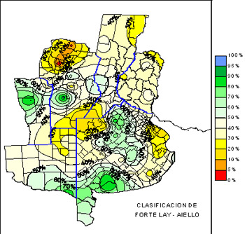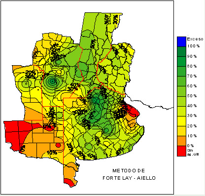 Considerar en sequía absoluta las áreas con 0% de agua útil, en sequía condicional las áreas entre 0 y 50% de agua útil y en humedad óptima las áreas entre 50 y 100% de agua útil.