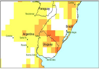 El déficit de lluvias también se extendió al sur de Brasil y a Uruguay, lo que se observa en la figura 2.