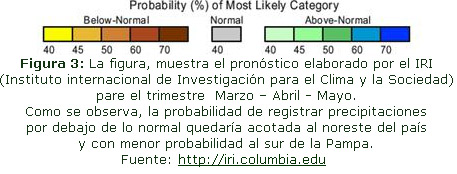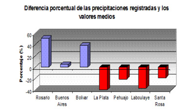 En cuanto a la evolución de las precipitaciones durante el verano, observan que los déficits se concentraron en la provincia de La Pampa, extremo oeste y noreste de Buenos Aires y sur de Córdoba lo que se corrobora en la figura 1 a través de diferentes localidades.