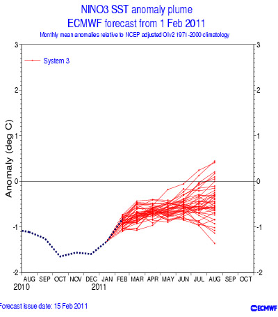 El fenómeno de La Niña tiende a debilitarse cada vez más, las anomalías de superficie del mar en el océano Pacífico Ecuatorial, según las proyecciones, apoyan esa tendencia.