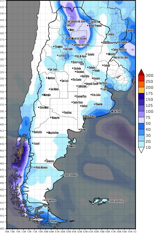 Las provincias más afectadas por las precipitaciones serían Santa Fe, particularmente el centro y sur de la provincia, Córdoba y Santiago del Estero, pero en general todo el centro y norte del país presentará precipitaciones entre débiles y moderadas. Por otro lado, el centro y sur de la región pampeana y toda la zona patagónica las condiciones se estabilizan, con un marcado descenso de temperatura.