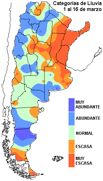 Si bien para la franja este del país, las lluvias de marzo son importantes, no son decisivas como en otros sectores de la región pampeana. Esto es, cuando marzo se presenta con una oferta de agua más cercana a los valores normales, los cultivos que vienen atrasados cierran su ciclo con mayor holgura, sin embargo la actual falta de precipitaciones no define las perspectivas hídricas para la fina. El margen para recuperar humedad en la zona triguera principal de la provincia es importante. Hasta mediados de mayo, la zona estadísticamente, tiene buenas posibilidades de recuperarse. Es distinta la situación para la franja oeste del país, con zonas particularmente vulnerables como el sudoeste de BA o la provincia de CB. Estos sectores deben lograr recargas importantes hasta mediados de abril, de otro modo se estaría definiendo un indicador desfavorable para el inicio de la fina.