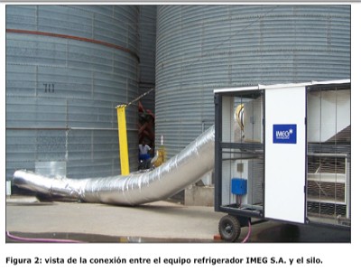 Vista de la conexión entre el equipo refrigerador IMEG S.A Y el silo