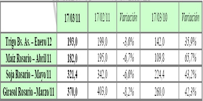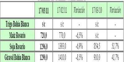 El dólar agrario correspondiente al mes de febrero presentó los siguientes valores: soja $0,99; trigo $1,17; girasol $1,04 y maíz $1,22.