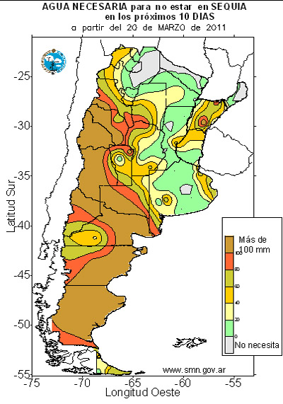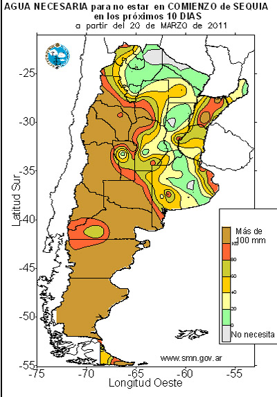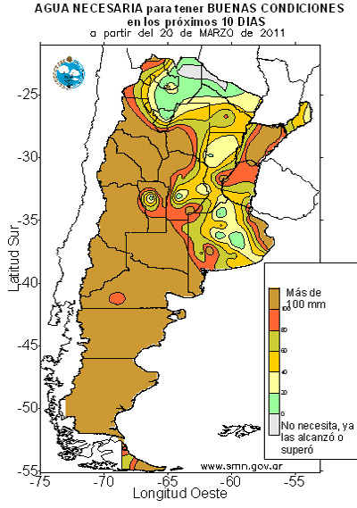 Evolución del Balance Hídrico SEGUNDA DÉCADA de MARZO de 2011