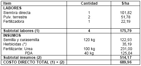 Cuadro 1. Costo directo total por hectárea de implantación y protección del cultivo