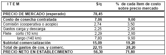 Cuadro 3: Precio neto en establecimiento descontados gastos de cosecha y comercialización.