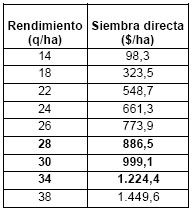 El cuadro 4 muestra los márgenes que se pueden lograr para distintos niveles de rendimiento, según condiciones climáticas, de acuerdo al precio estimado y los costos de la tecnología evaluada.
