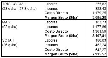 Del mismo surge un saldo neto negativo de mas de $ 1.000 por hectárea en soja, tanto de primera como en doble cultivo mientras que en los cereales la pérdida es marcadamente menor. Por ello es importante el mantenimiento de los cereales en la rotación, tanto desde el punto de vista financiero en el caso del doble cultivo como para mantener la sostenibilidad de la empresa rural en la zona en el mediano plazo.