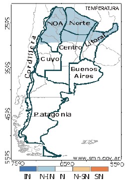 Referencias: mayor probabilidad de ocurrencia de temperatura media o