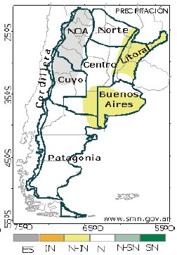 Referencia: En colores la categoría más probable. N: normal (tercil medio)