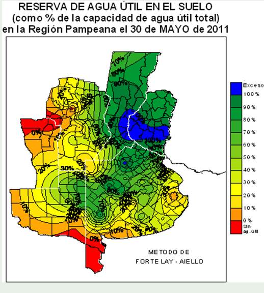 En la figura se observa cómo se distribuye la humedad del suelo en la región Pampeana
