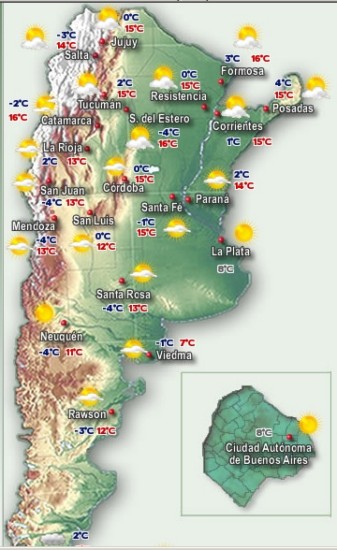 Temperatura y humedad al miércoles 6 de julio de 2011 (Fuente: Servicio Meteorológico Nacional)
