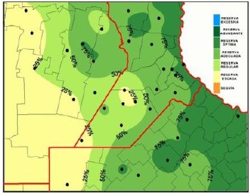 Reserva de agua útil para pradera permanente al 7/7/2011