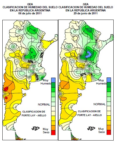 el período anterior en toda la región. El contenido de agua en el suelo sobre la