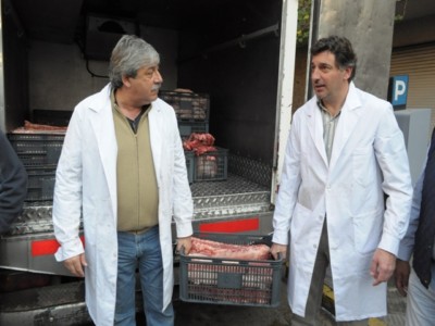 Buzzi y Príncipe descargan el primer cajón de carne fresca de cerdos federados