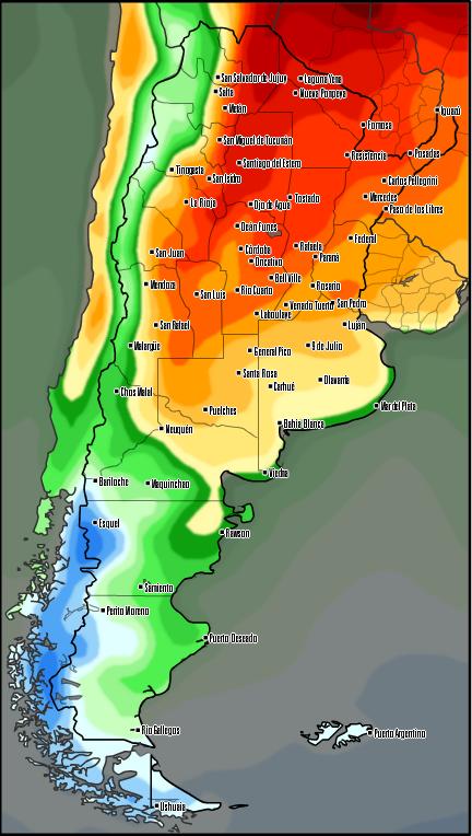 En cuanto a las marcas térmicas mínimas, se observarán algunas heladas aisladas durante el miércoles, luego, con la rotación del viento al sector norte, se espera un significativo incremento de las marcas térmicas, aunque el mismo será progresivo y sólo interrumpido por el pasaje del sistema frontal frío durante el viernes y sábado.
