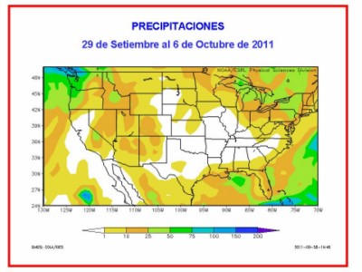 Perspectiva agroclimática para los EE.UU. del 29 de setiembre al 6 de octubre de 2011: continúa el tiempo severo, mientras comienza a entrar aire frío, se modera el calor y se reducen las precipitaciones