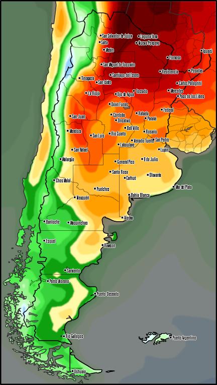 En cuanto a las marcas térmicas máximas más altas se podrán medir en la provincia de San Juan, y en especial durante el comienzo de la semana, alcanzando valores en torno a los 30-32° C.