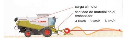 Figura 5. Cosechadora inteligente: autorregulación de la velocidad de avance, para mantener el flujo de alimentación constante, frente a cambios de ambientes y de rendimiento.