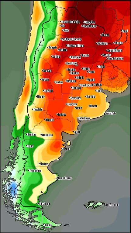 Las mismas comenzarán afectando la zona sur de la provincia de Buenos Aires y el sur de La Pampa y luego se irán desplazando hacia el norte. Se espera que los acumulados más importantes se observen sobre la provincia de Buenos Aires, marcándose dos núcleos importantes.