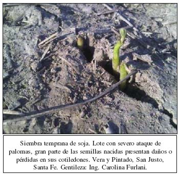 No obstante, para el fin de semana nuestro informe climático pronostica lluvias de v ariada intensidad sobre gran parte del área agrícola nacional, fenómeno que ralentizaría la cobertura. En Chaco y Centro Norte de Santa Fe, donde la siembra ya culmino, los plantíos transitan desde V4 (cuatro pares de hojas desarrolladas) hasta comienzos de floración, aquellos lotes en Chaco que fueron implantados a fines de julio. En estas regiones, serán necesarias nuev as lluv ias para abastecer la fuerte demanda hídrica del cultivo durante la etapa del llenado de granos.