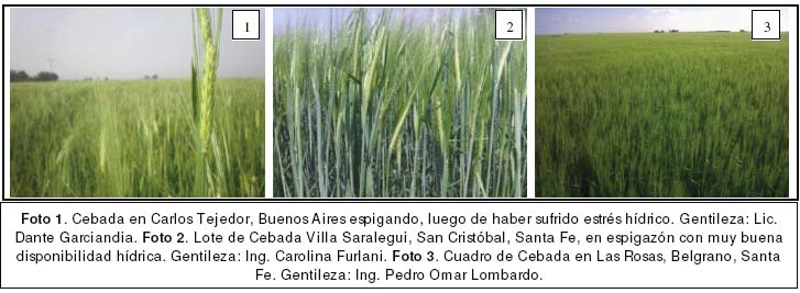 Las demas zonas transitaron este lapso de tiempo, con algo más de reservas de humedad en el suelo, recibiendo precipitaciones de escasa intensidad durante ese periodo, que ayudaron momentáneamente a mantener en buenas condiciones los cultiv os. Actualmente, estos lotes reflejan diferencias positivas en número de macollos, espigas y espiguillas. En Córdoba, Santa Fe y Entre Ríos los plantíos transitan plena espigazón, mientras que los más av anzados ya se encuentran en la fase de llenado de grano.