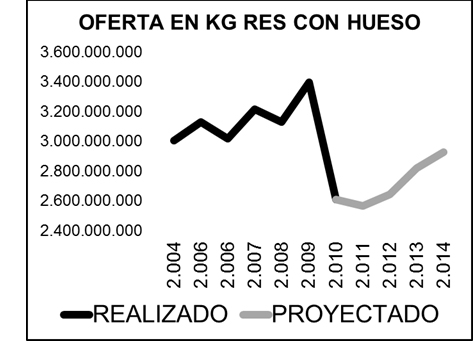La oferta de carne que en los 6 años precedentes (2003-2009) ofreció 3,2 millones de Tn, el año pasado bajó a 2,6 millones, este año será aún menor, para el 2012 será parecida al 2010 y si no ocurre algún evento climático adverso, recién comenzará a crecer entre el 2013 y el 2014, en que la oferta de todos modos no pasará de 2,9 millones de tn.