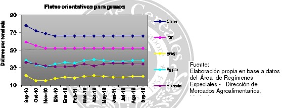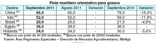 En cuanto a los fletes marítimos orientativos para granos para septiembre de 2011, no presentaron diferencias con respecto al mes anterior.