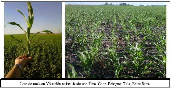 Un tema a considerar es el de la calidad del producto con variabilidades comerciales significativas. Se relevan datos de zonas como el Centro-Norte de Córdoba y el Núcleo Norte donde los registros dan buenos-regulares y Lote de maíz en V6 recién re-fertilizado con Urea. Gdor. Echague, Tala, Entre Ríos. hasta malos en términos de porcentuales de proteína y gluten. Esto es atribuible a las variedades utilizadas, al paquete tecnológico aplicado y a las lluvias registradas y temperaturas durante la última parte del ciclo del cultivo. Similares condiciones se están dando en el Oeste de Buenos Aires y el Norte de La Pampa si bien solo se ha colectado un 5% del total sembrado regional.
