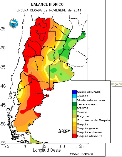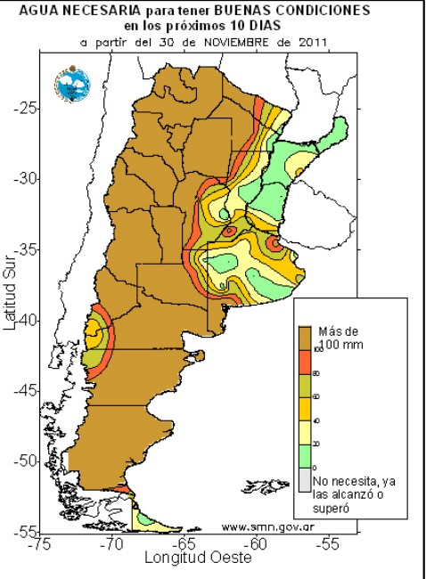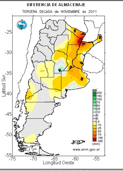 Balance hídrico de la tercera década de noviembre de 2011, diferencia con la década anterior y agua necesaria en los próximos 10 días para tener buenas condiciones