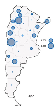 La producción de cultivos plurianuales se desarrolla en 22 provincias argentinas y ocupa una superficie de 2,22 millones de hectáreas. Generalmente estas actividades se ocupan en valles y regiones específicas y combinan la producción primaria con las actividades conexas.