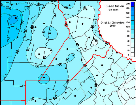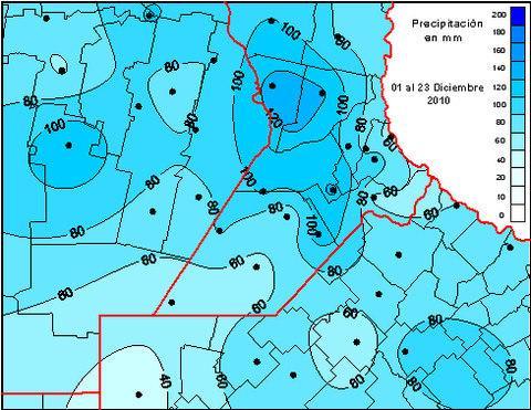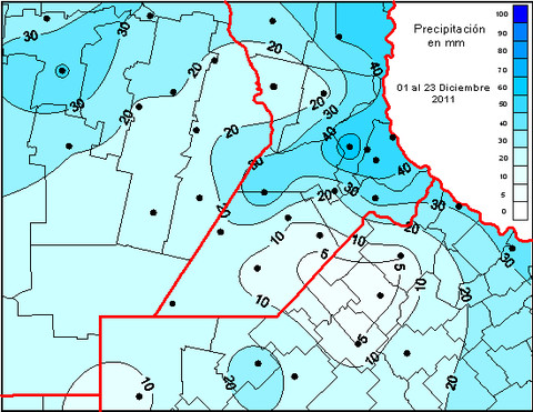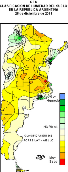 La semana del 15 al 22 de diciembre, con temperaturas altísimas, vientos desecantes y acumulados pluviométricos en diciembre paupérrimos (no superan los 20 mm en gran parte de la región) pusieron a la producción maicera en alerta amarilla y en una angustiosa espera de lluvias para la semana entrante. Hacia el noroeste del área GEA, donde los milímetros de la última lluvia (22/12) fueron más alentadores, y los maíces fueron sembrados más tarde, la situación es mejor.