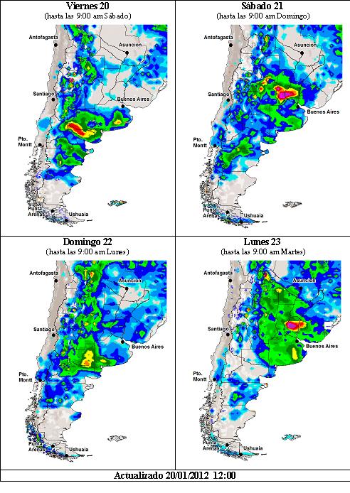 El sábado 21/01 se mantuvo con temperaturas calurosas en gran parte de la región con ocurrencia de tormentas y chaparrones sobre La Pampa, Centro y Sur de Santa Fe, Sur de Entre Ríos, Oeste de Buenos Aires y Sur de Córdoba. No se descartaron tormentas aisladas en el resto de la región pampeana debido a la inestabilidad reinante.