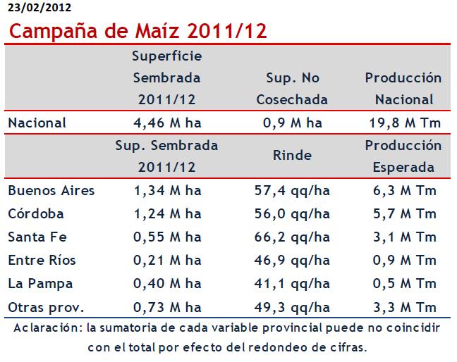 Sobre el maíz, agrega que el rinde será de 55,7 quintales y que unas 900 mil hectáreas “no entrarán al circuito comercial”.