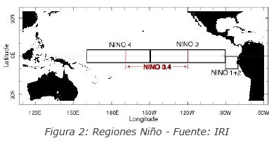 En la semana que termina el 22 de enero las anomalías fueron de -1.0°C en las regiones Niño 4 y Niño 3.4, y -0.5ºC en la Niño 3.