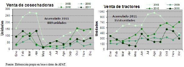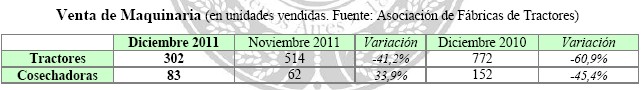 Con respecto al mes anterior, solo la soja presento una variación significativa, que fue del 0.2% La venta de maquinaria agrícola al mes de diciembre presentó las siguientes variaciones con respecto al mes anterior: -41,2% para los tractores y 33,9% para las cosechadoras.