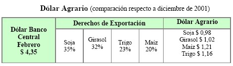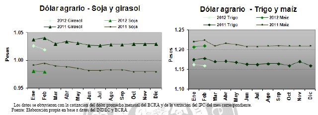 El dólar agrario correspondiente al mes de febrero presentó los siguientes valores: soja $0,98; trigo $1,16; girasol $1,02 y maíz $1,21.