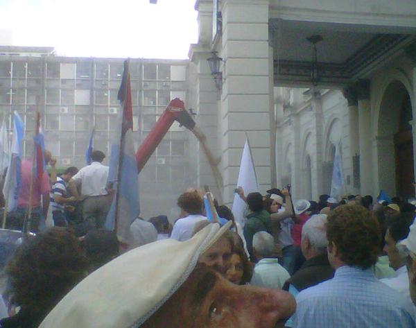 Al finalizar la protesta del campo, los productores intentaron ingresar a Casa de Gobierno, la llamada Casa Gris, por un acceso por donde solamente ingresan el Gobernador y los Ministros, por calle Córdoba, lo que derivó en incidentes con efectivos de la Policía de Entre Ríos.