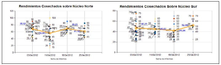 De igual manera las productividades medias de los cultivos implantados en fechas tempranas, sobre todo en la región núcleo maicera y aledaños no fueron alentadoras, por el contrario en la mayoría de los casos no cubrieron las expectativas del productor, ni las proyectadas en nuestras estimaciones.