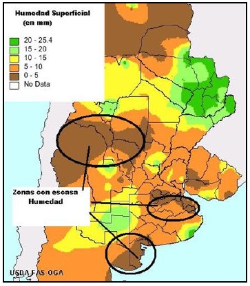 En esta última región se presume que habrá una disminución en la siembra del cereal. Diferente es la condición de los suelos en el sur provincial, donde se observan mayores reservas hídricas.