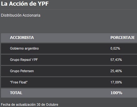 Respecto de las claves del futuro de YPF se encuentra a la venta el 25,4 % del paquete accionario de la petrolera, que hasta la nacionalización pertenecía a la familia Eskenazi.