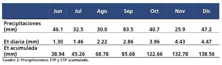 Cuadro 2: Precipitaciones, ETP y ETP acumulada.